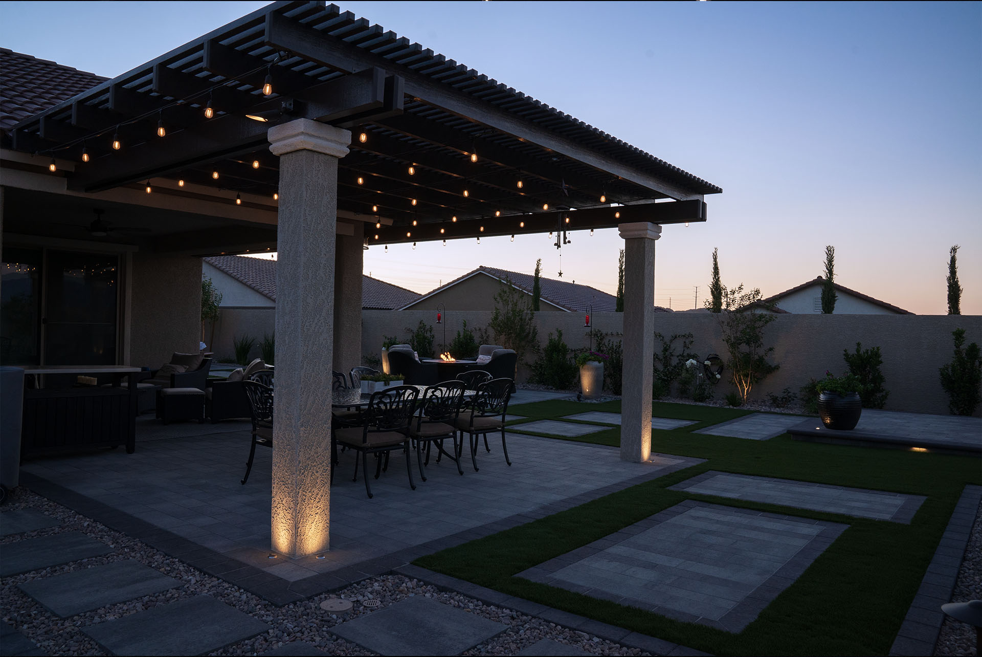 Hardscape lights are sleek, low-profile fixtures designed to illuminate retaining walls, stairs, and patios, enhancing the texture and beauty of outdoor structures with subtle, ambient lighting.